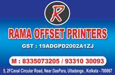 Rama Offset Printers in Kolkata offers high-quality vinyl printing services. Established in 1992, they specialize in various printing solutions, including: Vinyl Printing: Ideal for banners, signage, and vehicle wraps. Flex Printing: Suitable for large-format outdoor advertising. Hoardings and Banners: Designed for impactful outdoor visibility. T-shirt Printing: Custom designs for apparel. They are known for their vibrant prints, attention-grabbing hoardings, impactful banners, and custom t-shirts. Their team ensures top-notch quality and fast turnaround times.